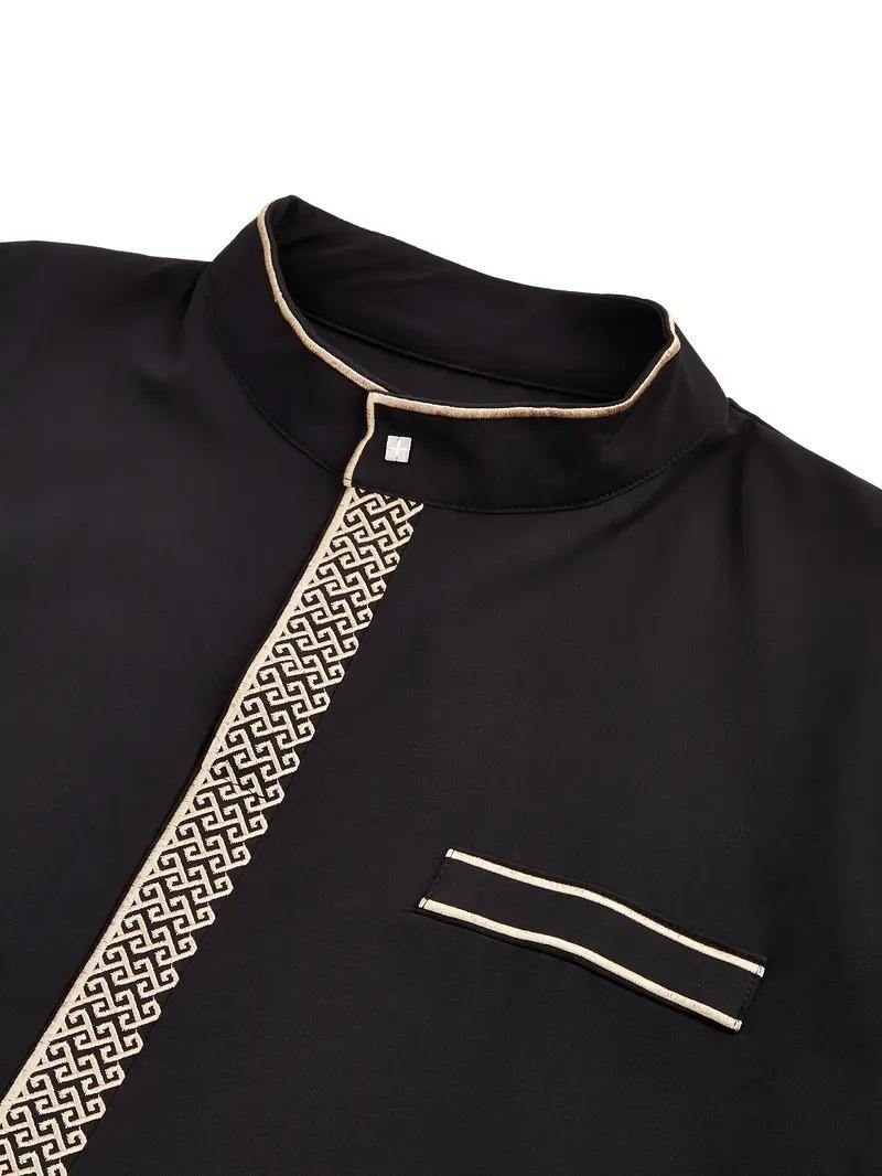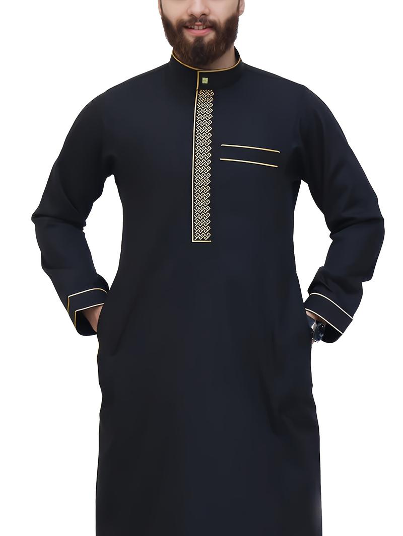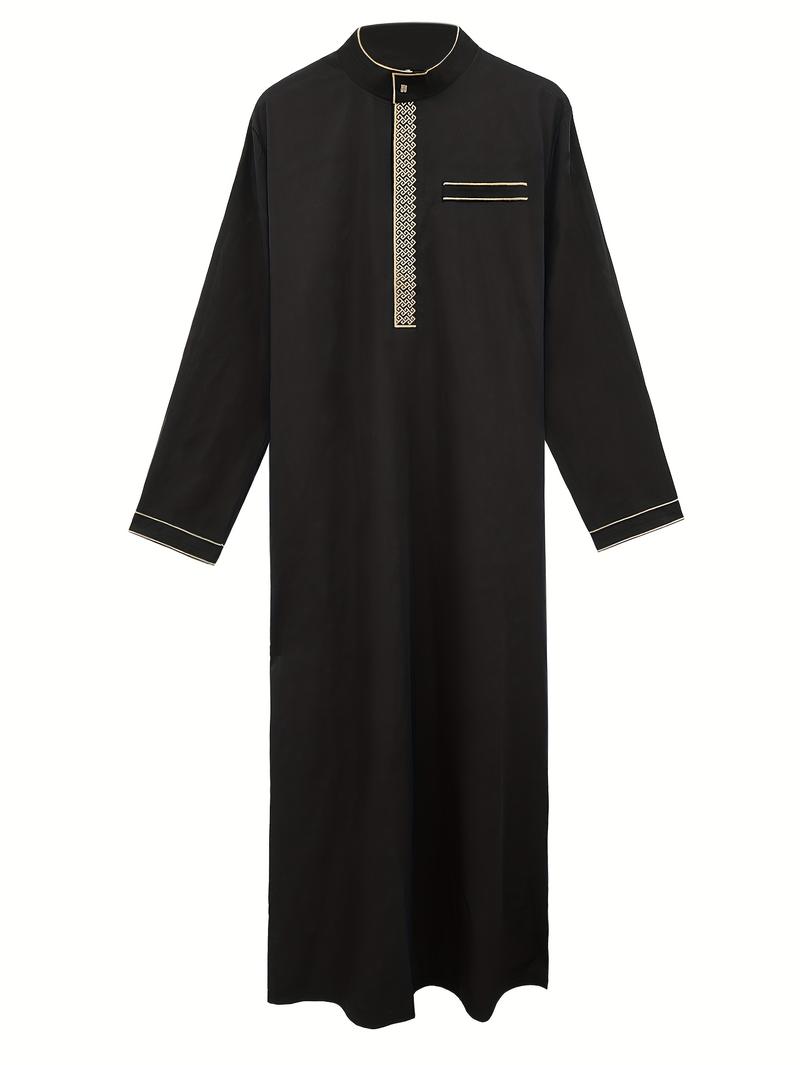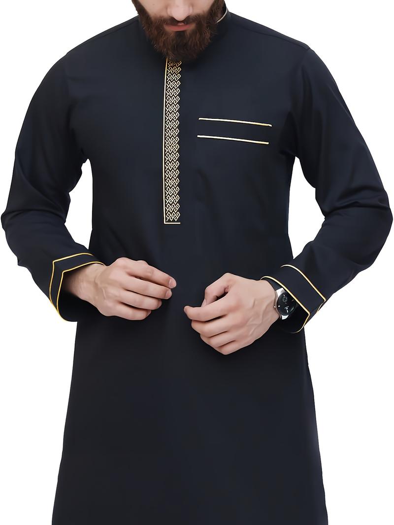 Mens Muslim Thobe, Islamic Arabic Embroidery Robe, Ramadan & Everyday Wear